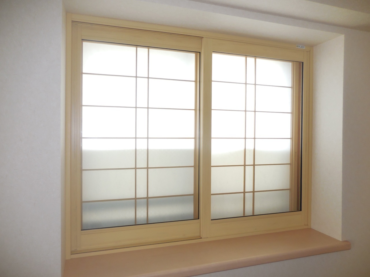 ※右記の写真は旭硝子製インナーサッシ「まどまど」の施工例です。まどまどは木目調の内窓サッシの中では見た目が綺麗で、デザイン重視の木障子風をご希望の方には向いています。また、防犯合わせガラス6.8ミリ仕様の設定があり、2枚のガラスが樹脂をサンドイッチしている構造ということで、防犯合わせガラスは防音合わせガラスに近い防音効果が得られるガラスです。そのため、まどまどは防犯対策と防音対策を同時に行いたいというお客様にはもっともお奨めできる内窓サッシです。(ただし、「防犯」合わせガラスより「防音」合わせガラスの方が厳密には防音に当然有利です。)